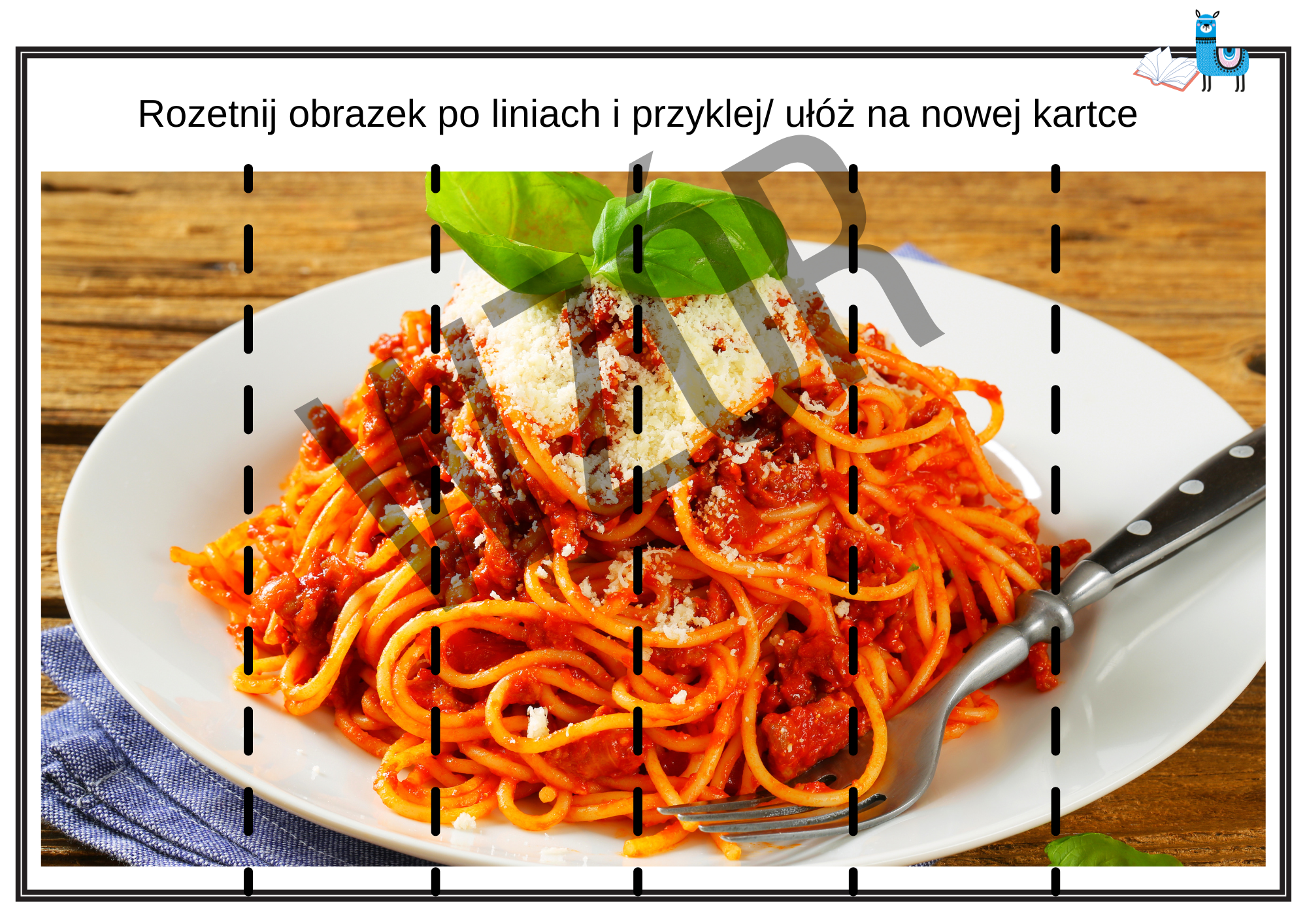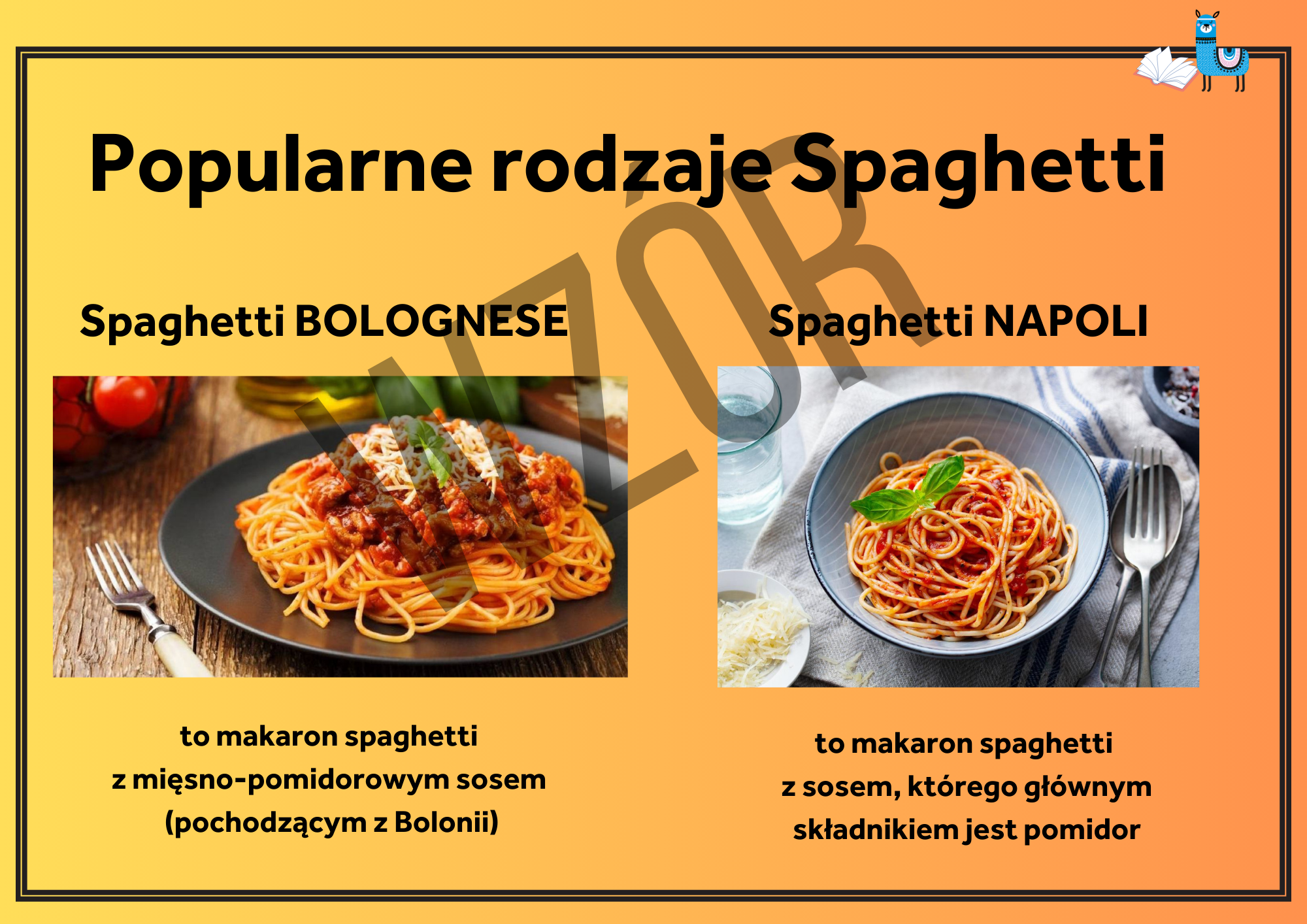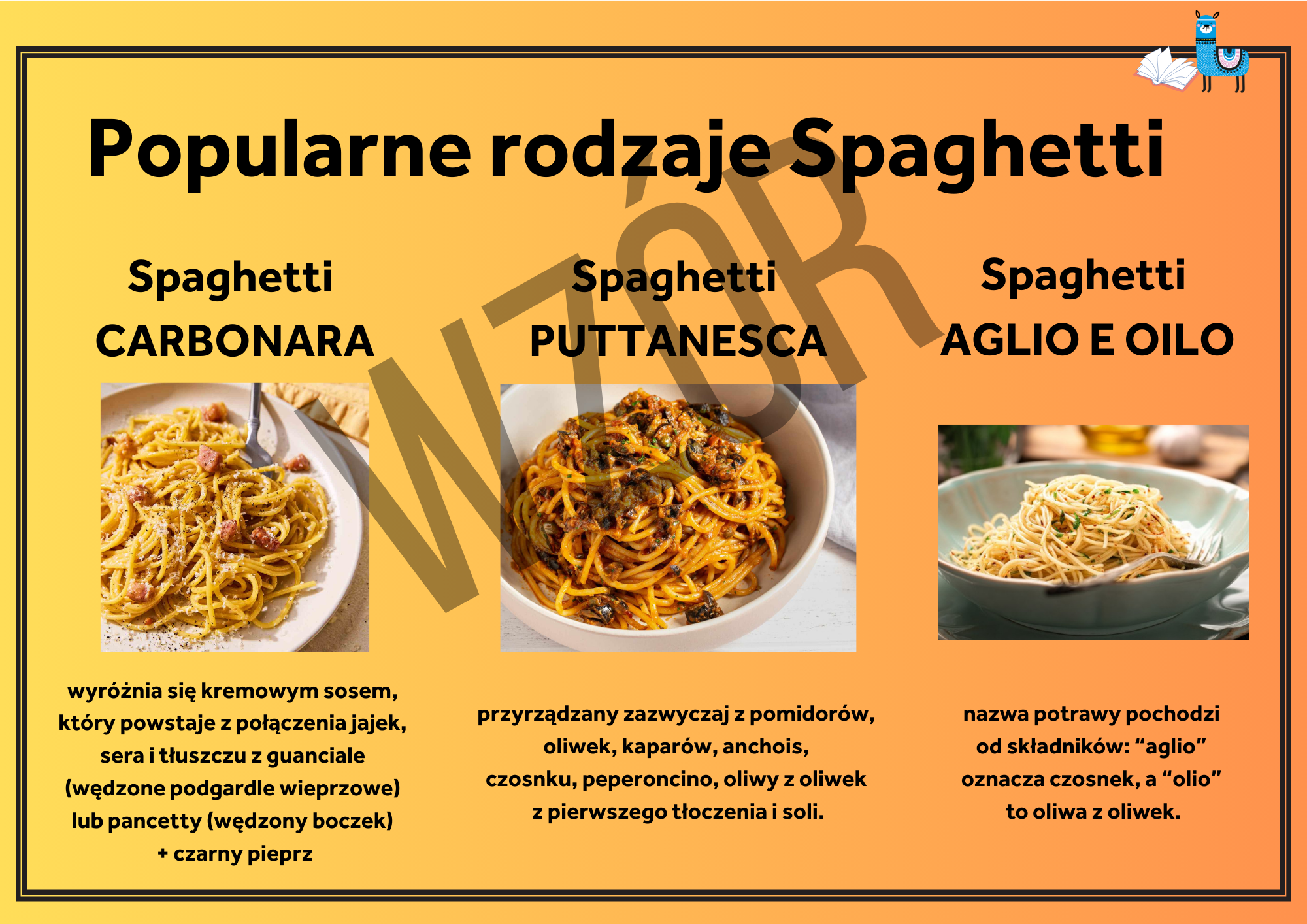 • karty pokazowe (pochodzenie i rodzaje spaghetti) x 4