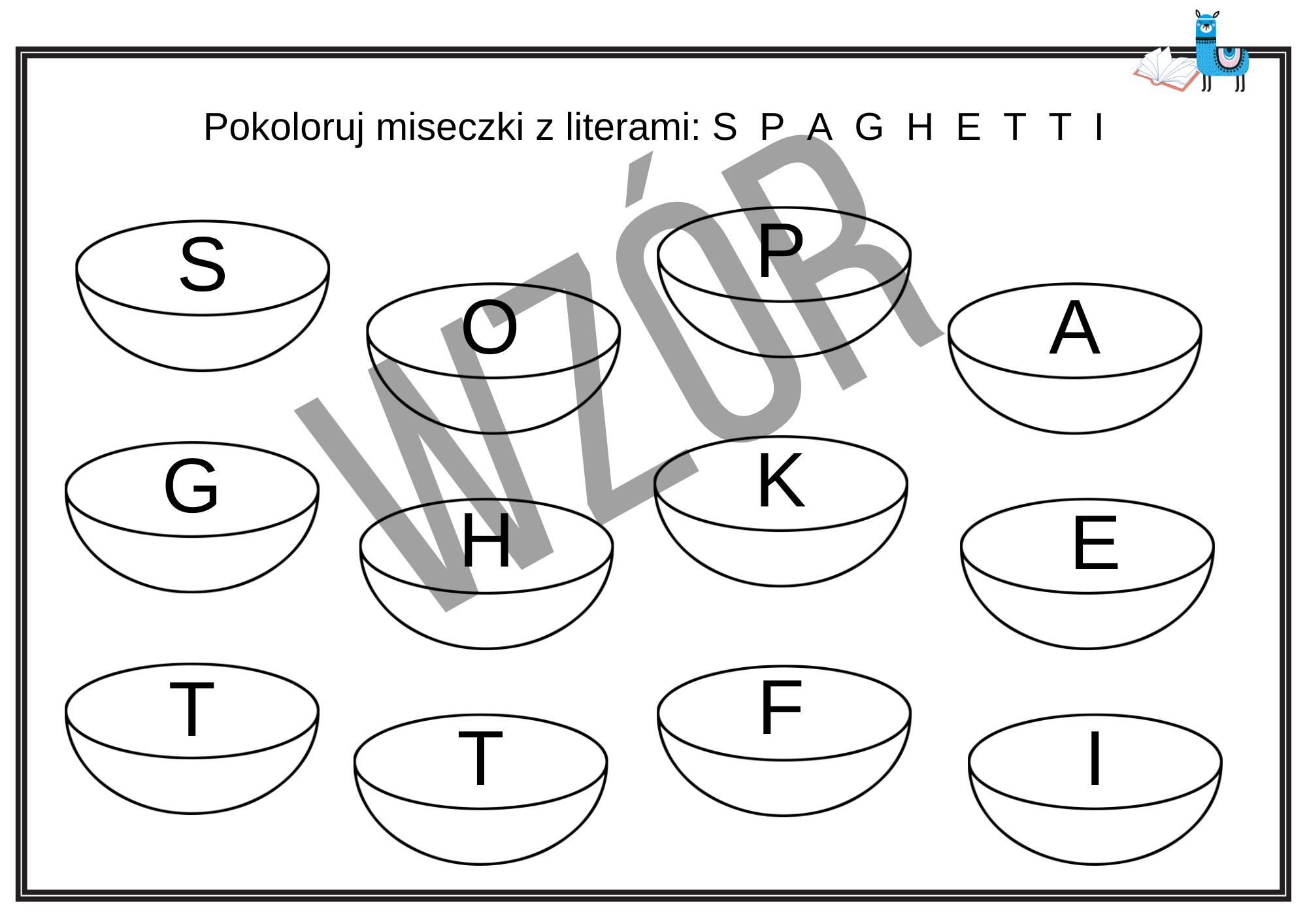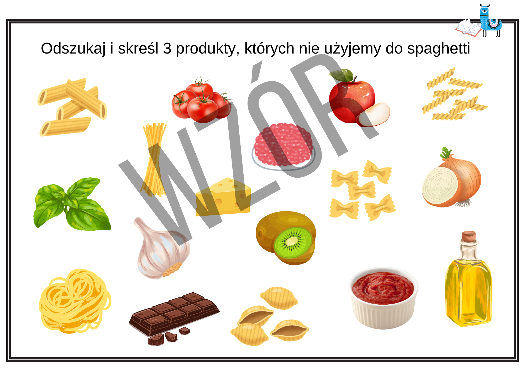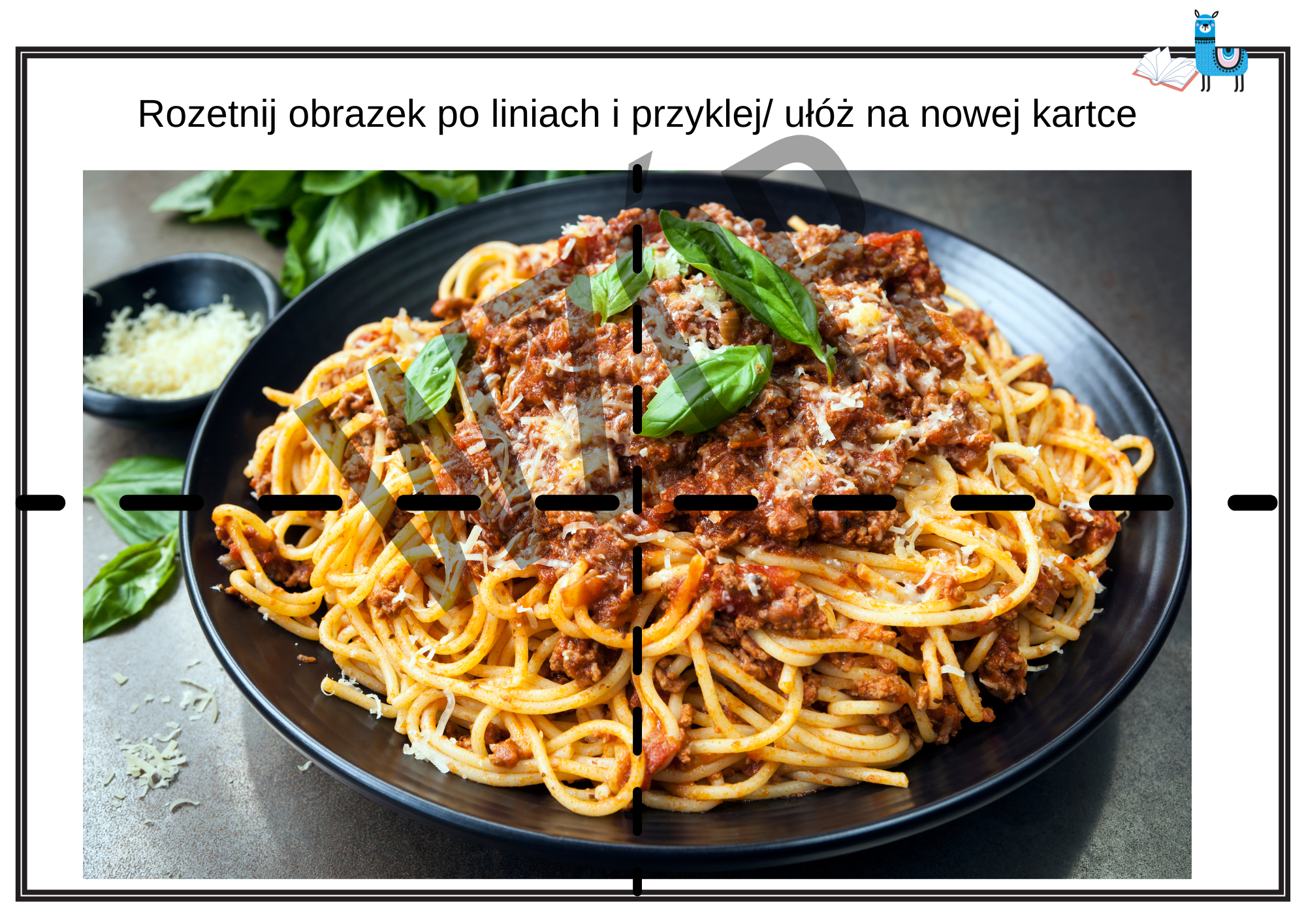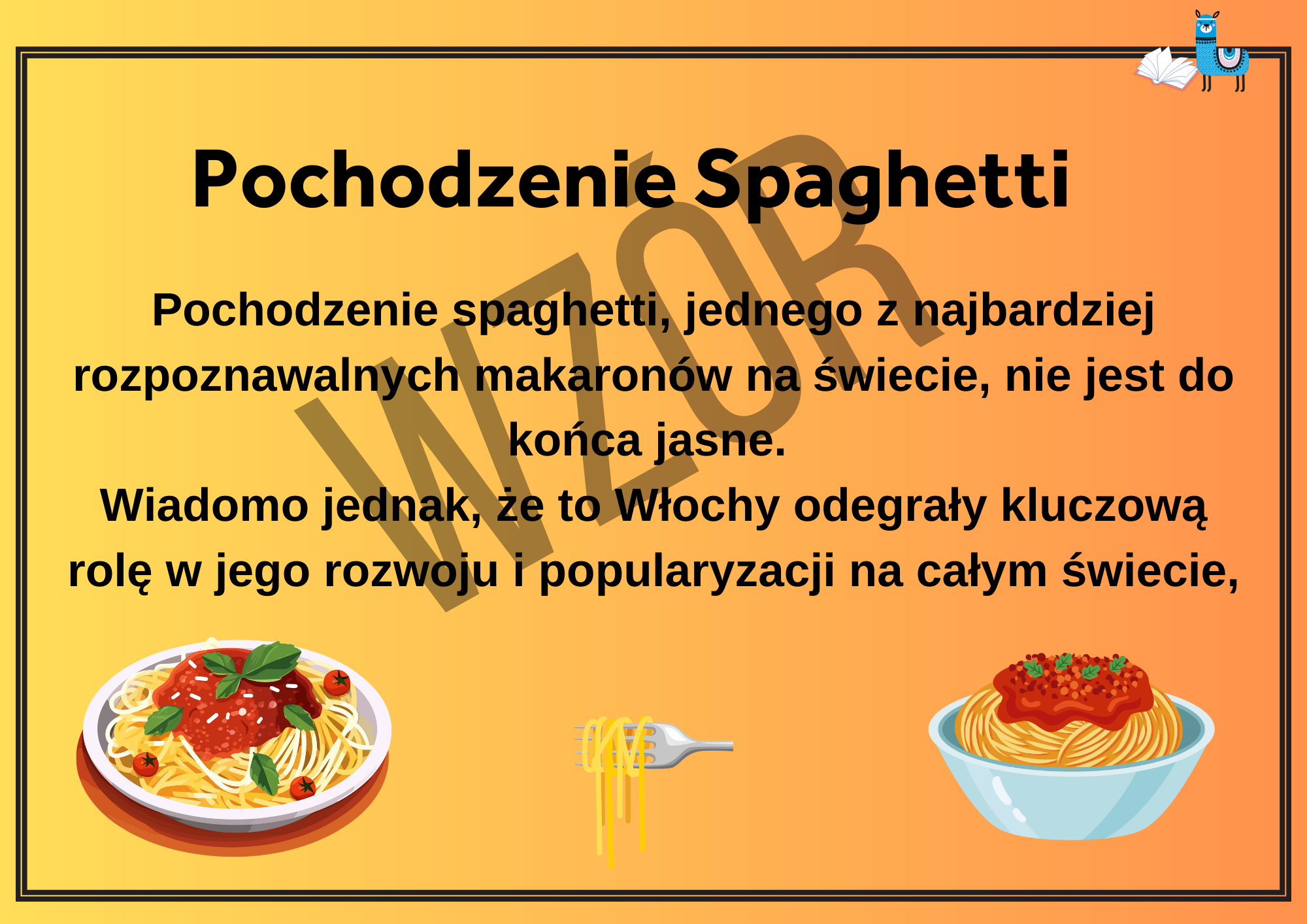 • karty pokazowe (pochodzenie i rodzaje spaghetti) x 4