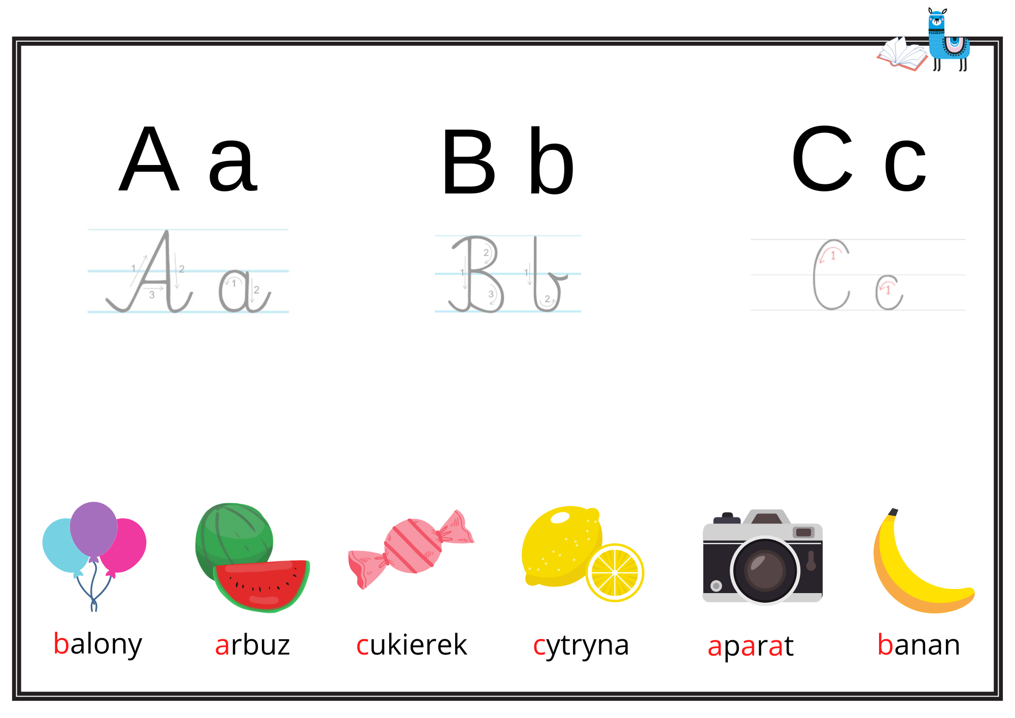 - “Poznaję alfabet” – 15 kart z literami do poprawiania oraz zadaniami aktywizującymi