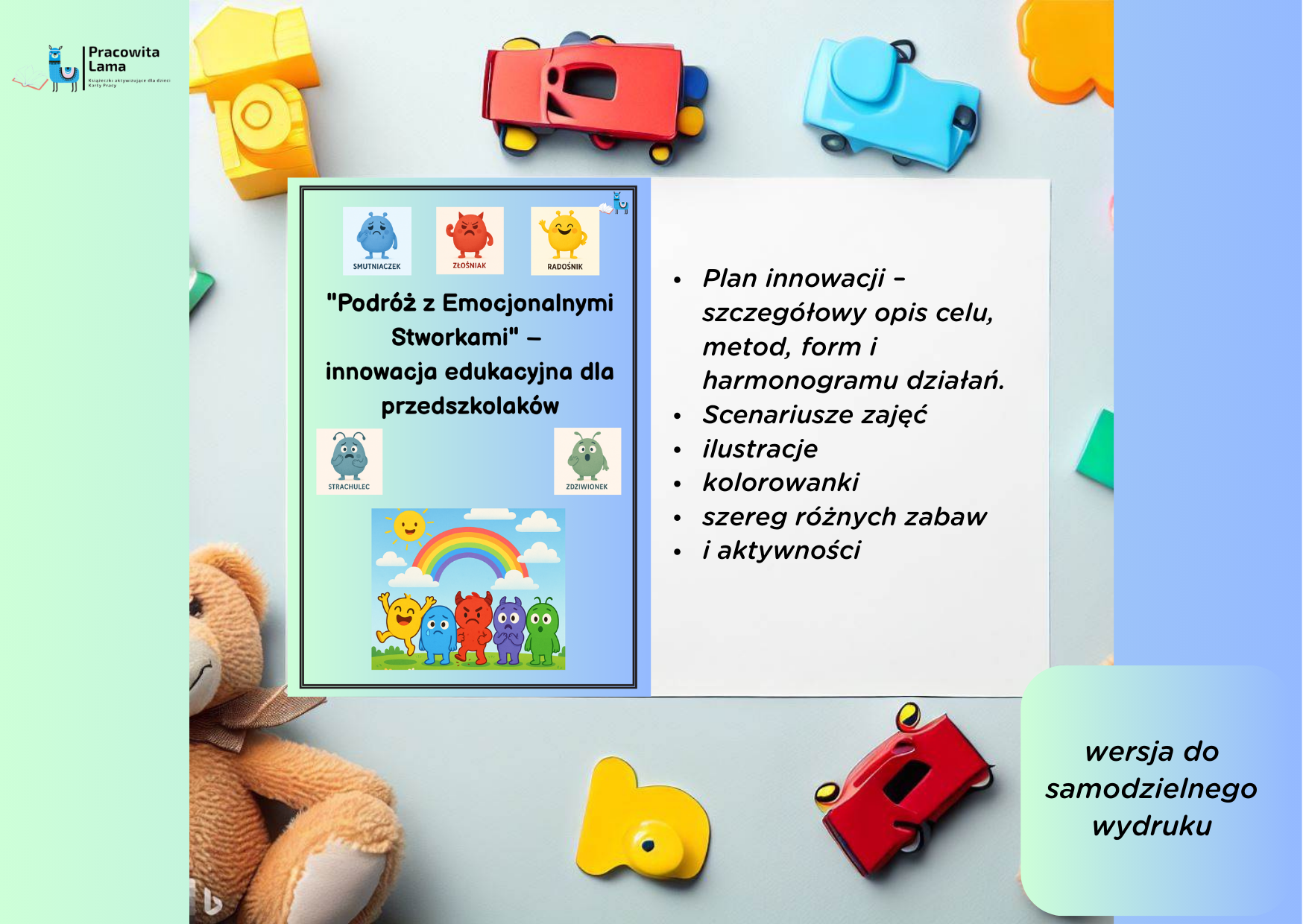 📌 „Podróż z Emocjonalnymi Stworkami” to wyjątkowy program, który sprawi, że nauka o emocjach stanie się dla dzieci radosną przygodą, a dla nauczycieli – cennym wsparciem w codziennej pracy wychowawczej.