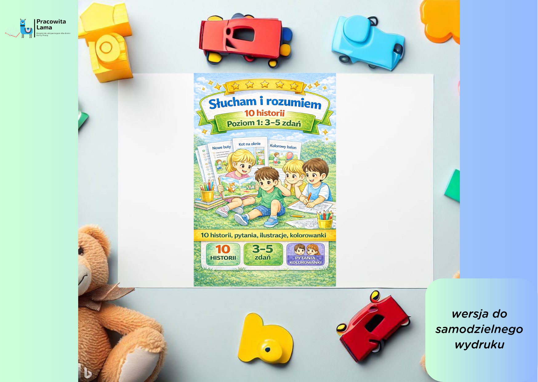 ⭐ Poziom 1 jest częścią większego zestawu „Słucham i rozumiem”, który obejmuje aż 5 poziomów trudności i 50 historii.